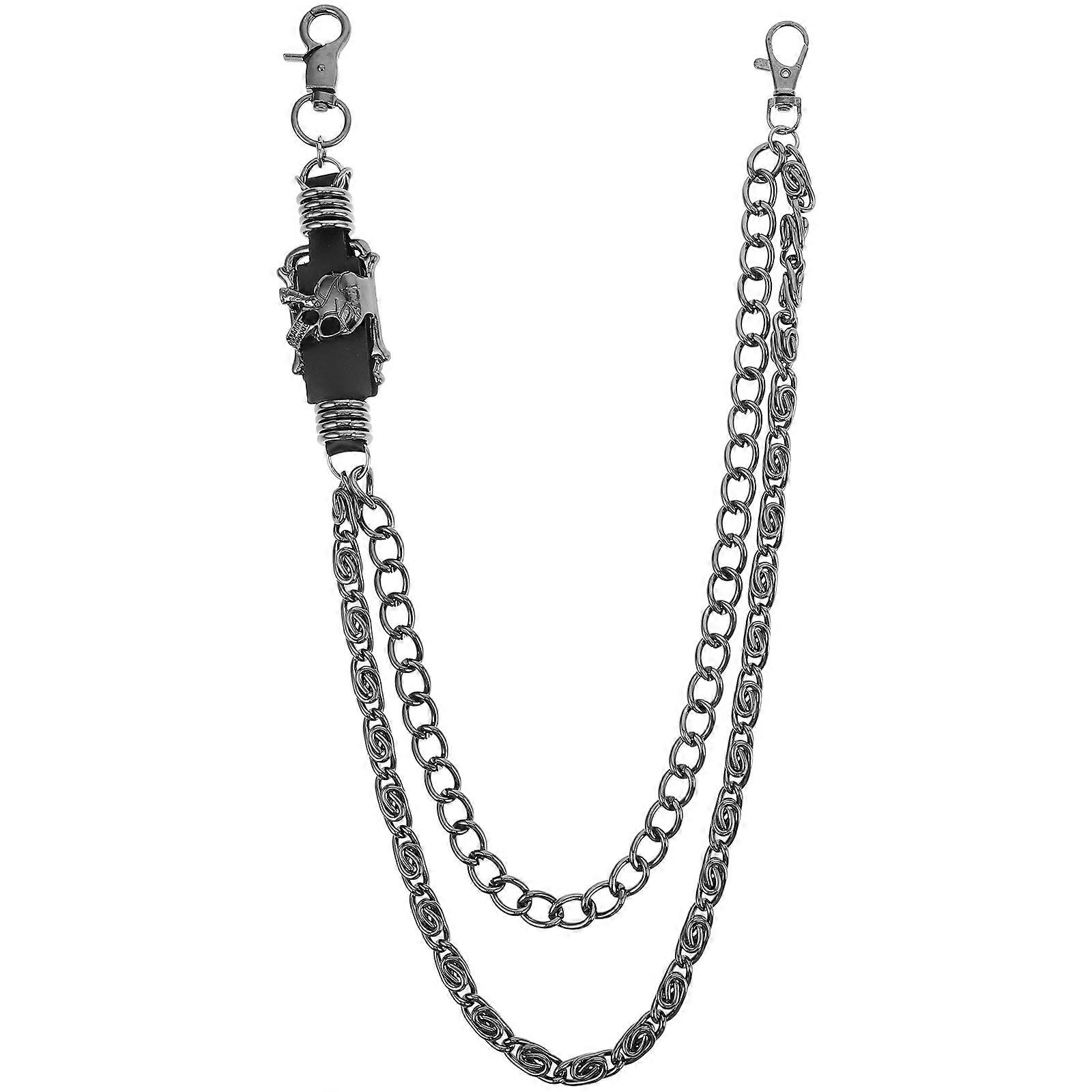 This versatile chain is not just a fashion statement but also a functional accessory. Its durable metal construction and secure clasps ensure it stays in place, whether you're dancing at a concert or going about your daily activities. The skull design adds a unique touch, making it a ideal addition to any punk or gothic wardrobe. Features -Color:Black -Material:Metal -Size: 58.00X3.00X2.00cm/22.79X1.18X0.79in -Distinctive design: the unique metal chain adds a fashionable and edgy touch to any outfit -Flexible use: compatible with different types of pants, such as jeans and casual trousers, for a stylish upgrade -Reliable material: made from durable metal, this chain is designed to withstand wear and tear -Simple attachment: the convenient clasp design ensures easy and quick installation on your pants -Universal fit: ideal for both men and women, making it a versatile addition to any Package list: 1 trouser chain