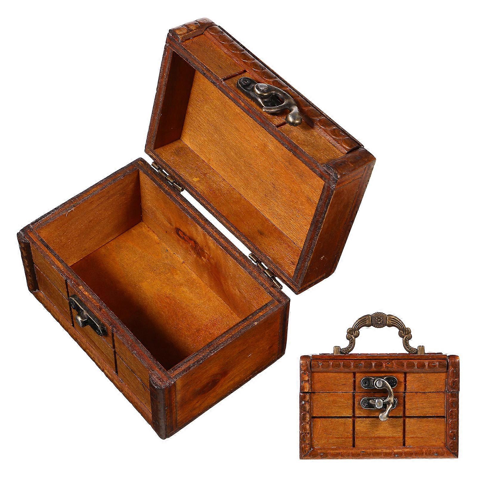 The wooden treasure chest is not only a functional storage solution but also a decorative piece that enhances your interior decor. Its classic design and sturdy construction ensure that your valuable items are kept safe and secure. Ideal for storing jewelry, keepsakes, and other household trinkets, this box is a must-have for anyone who appreciates vintage charm. Features -Color:Light Brown -Material:Wood -Size:11.80X8.00X7.80cm/4.64X3.14X3.07in -Unique vintage look: the creative design with a vintage wooden exterior adds a touch of personality and elegance to your jewelry storage -Portable convenience: the handle design makes it easy to carry, allowing you to organize and protect your jewelry on the go -Efficient organization: designed to store different types of jewelry, ensuring your items are neatly arranged and easily accessible -Solid wood: crafted of wood, it offers durability and protection for your precious jewelry -Multiscene application: ideal for home, business, travel, and more, ensuring your jewelry remains tidy and wellpresented Package list: 1 x vintage jewelry storage box