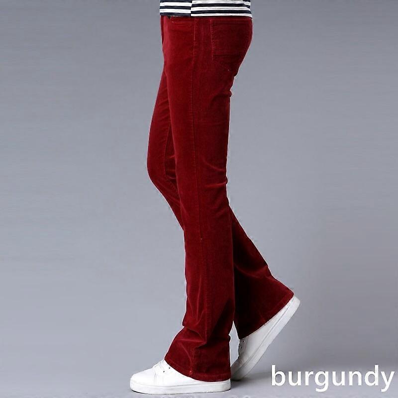 Men Bell Bottom Flared Trouser Long Pants Corduroy Casual Plain Slim Retro Pants