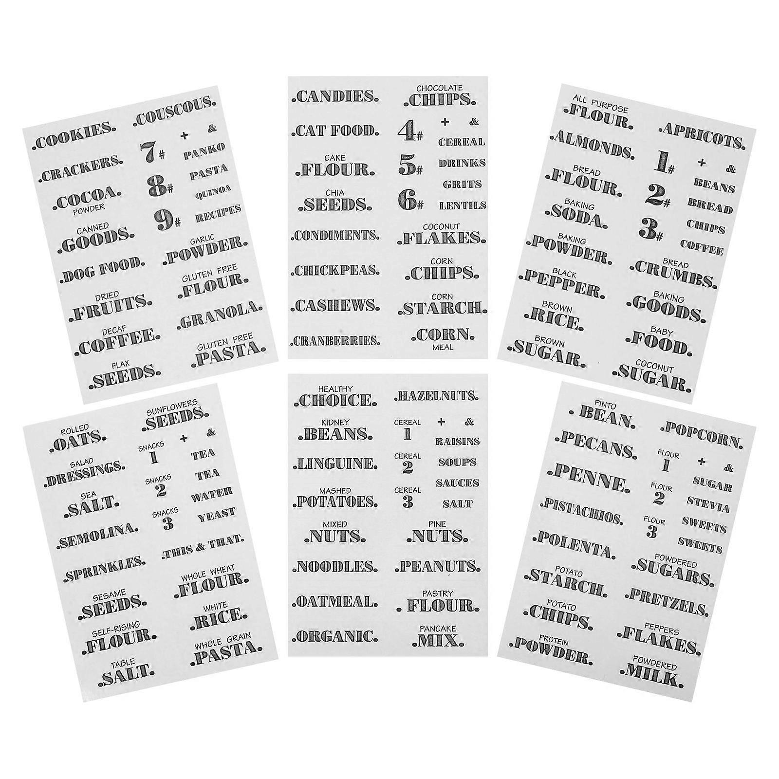 Waterproof PVC Kitchen Labels for Containers Black 6 Sheets Transparent 4.5 x 6 inches