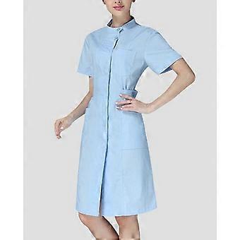 New Women Nurse Dress Doctor Beautician Lab Long Coat Stand Collar Work Clothes