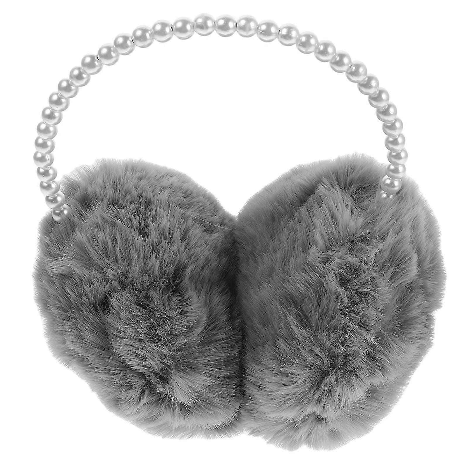Fluffy Plush Ear Warmers For Women Cold Weather Protection Adjustable Ear Muffs Grey Warm And Cute Design 1Pcs