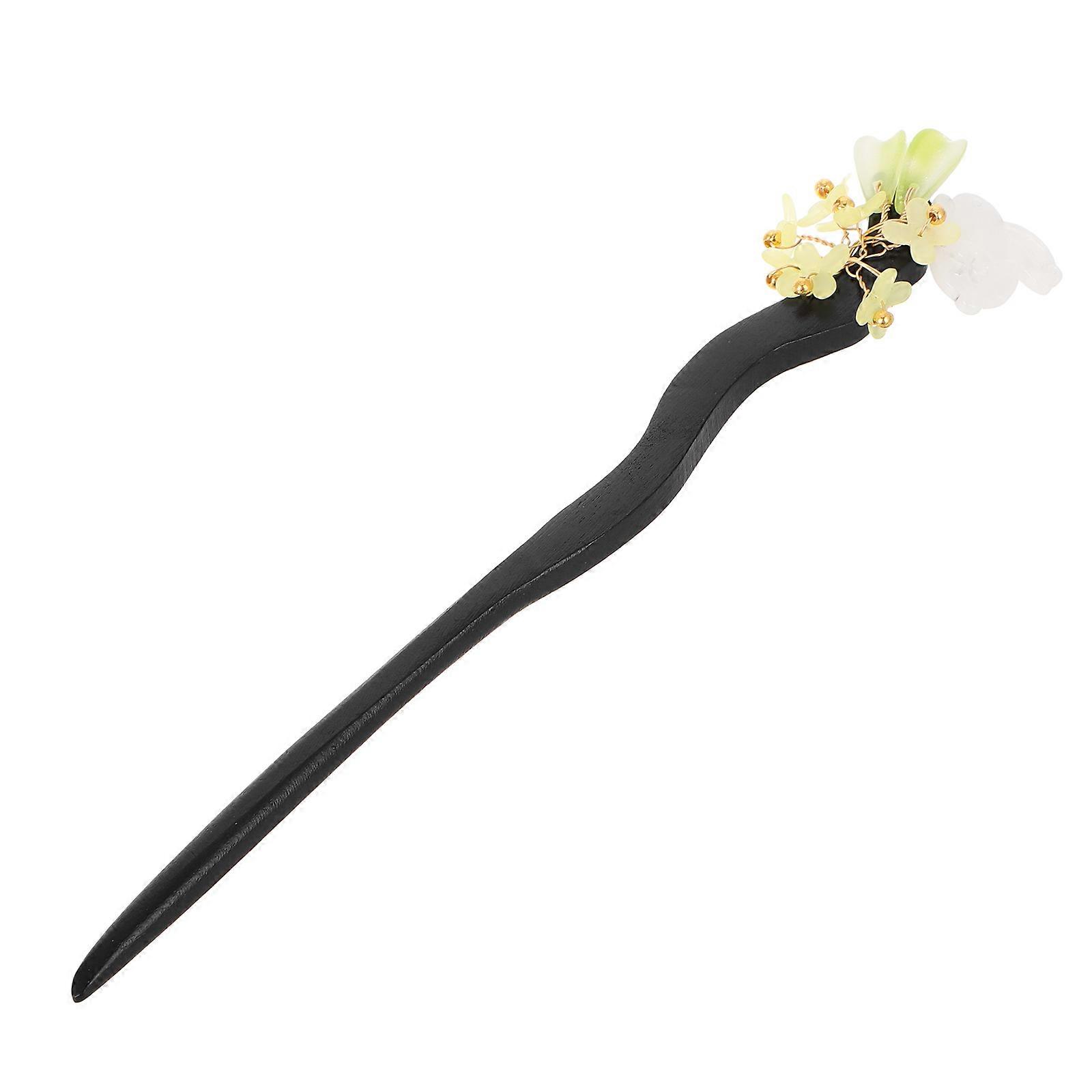 Black Wooden Hair Stick for Decor with Carved Flower Handmade Hair Accessory