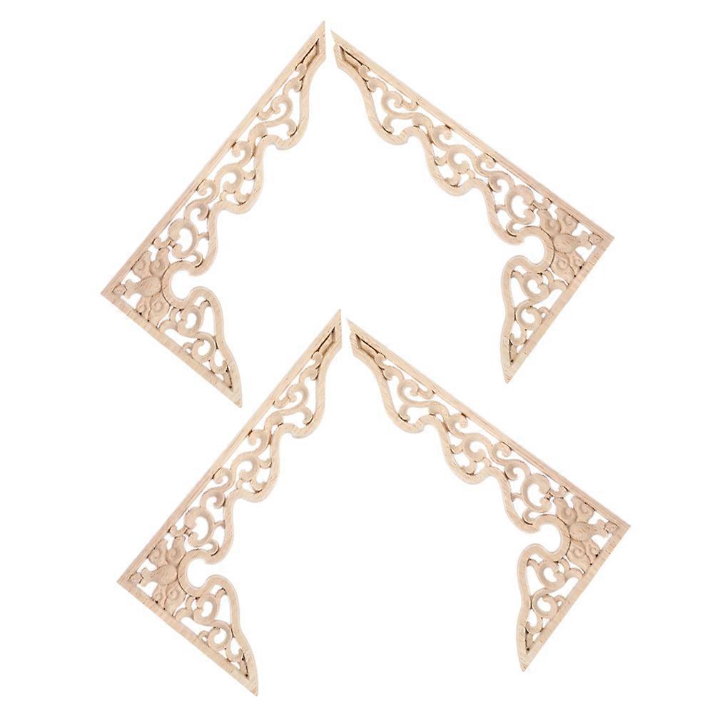 Wood Carving Decoration Unpainted Wooden Appliques Khaki 26.00X13.60X0.80CM Home Improvement 4Pcs