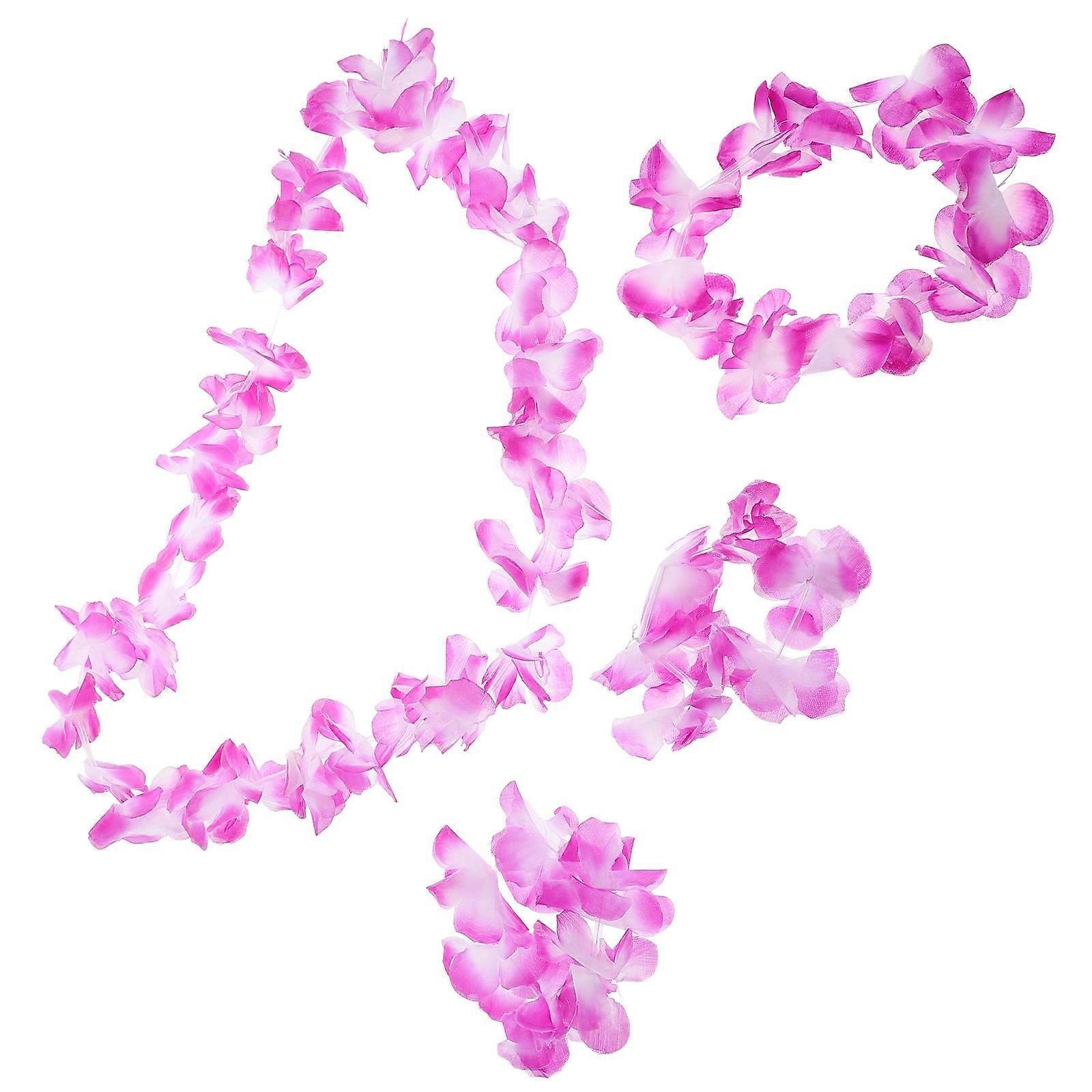 Hawaiian Necklace Headband 4Pcs Set for Decor Purple Cloth Women Accessories