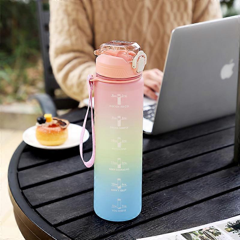 1000ML Gradient Sports Water Bottle Portable Sippy Cup with Carrying Rope Suitable for Outdoor Sports Cycling and Carrying