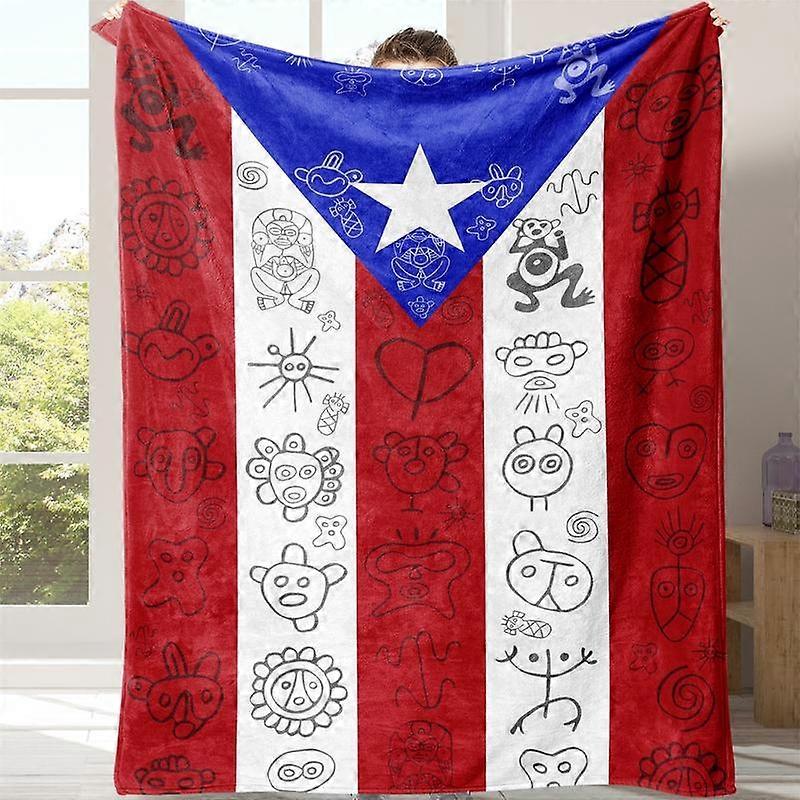 Puerto Rican Flag Flannel Blanket, Soft Warm Throw for Sofa Bed Travel Camping Office Chair, Lightweight Comfortable Gift Home Decor, Soft F