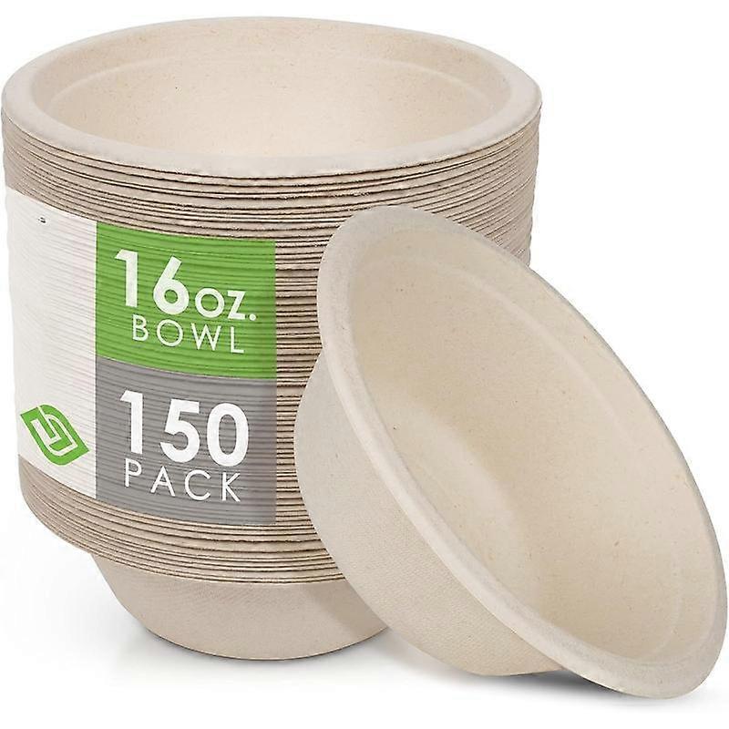 Compostable Paper Bowls [16 oz.] - 150 Disposable Bowls Sturdy Tree Free Liquid and Heat Resistant Alternative to Plastic or Paper Bowls