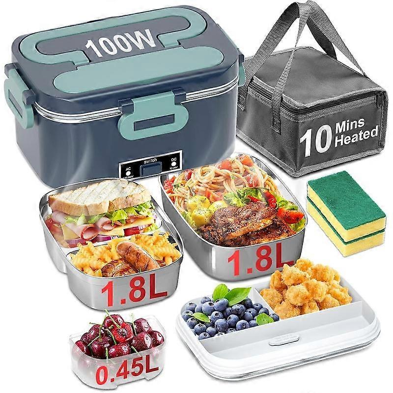 Electric Lunch Box for Adults - 2 Pack 1.8L Container 100W Heated Lunch Box for Men Fast Heating Heater Portable with ON/OFF , 0.6L Compart