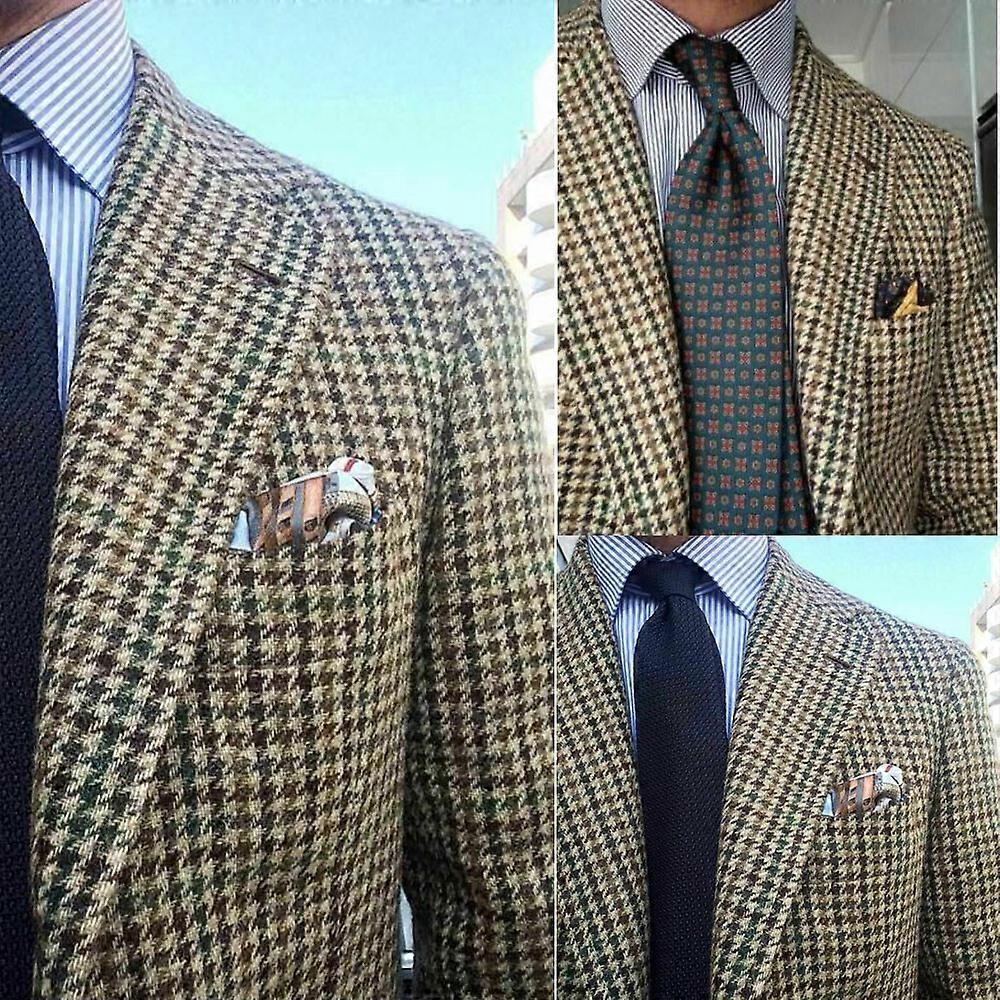 Business Men Suits Groomsman Houndstooth Blazer Notch Lapel Coats Tuxedos Custom