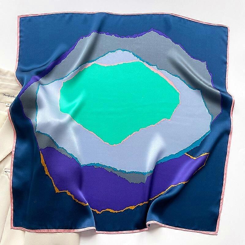100% Mulberry Silk 26" Square Scarf Women neckerchief Blue Purple Gray Scrawl