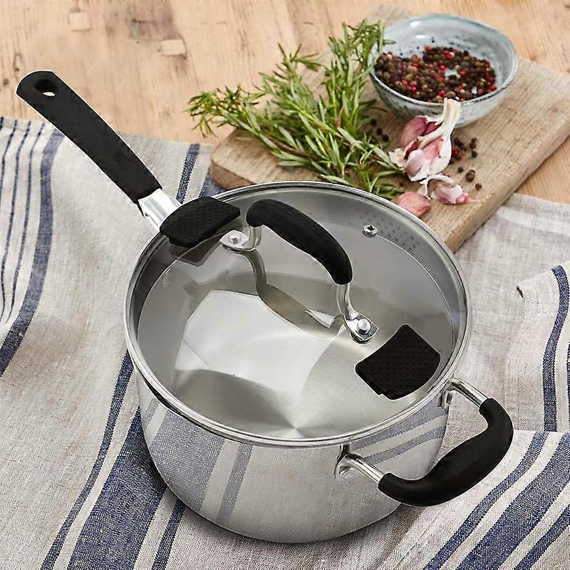 Stainless Steel Stock Pot with Pour Spout & Handles & Glass Lid with Strainer - 3.7 Quart