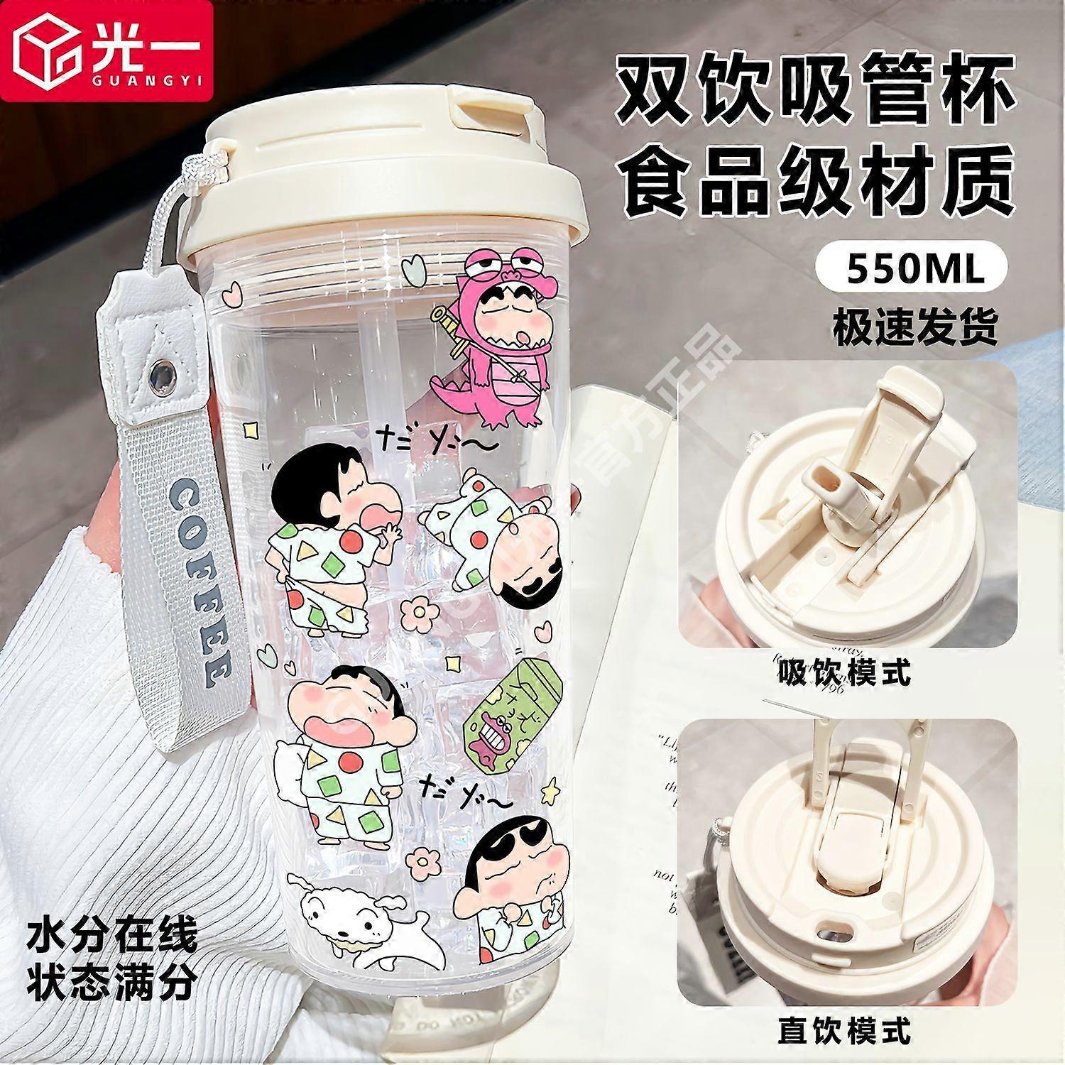 Kawaii Crayon Shin-chan Sports Water Cup Men's and Women's Summer Large Capacity Double Drink Student Plastic Anti-drop Cup