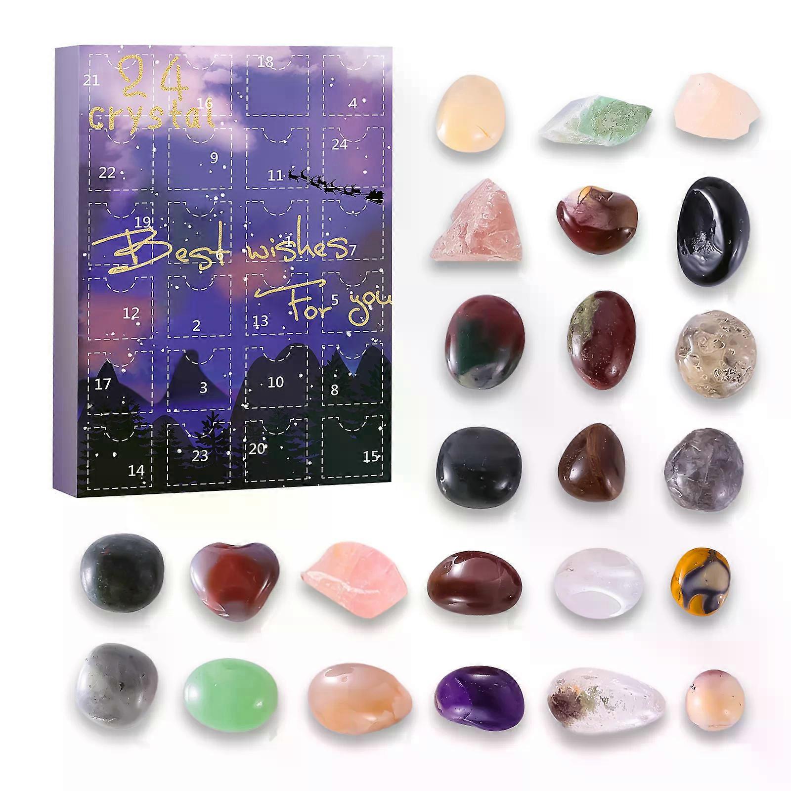 Geology Learning Blind Box - Christmas edition with natural crystals, stones & fossils. 24-grid jewelry collection for kids.