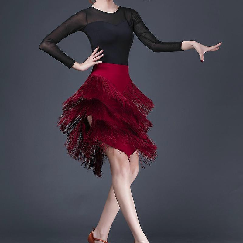 Women Layered Tassel Fringe Skirt Latin Dance Ballroom Salsa Tango Rumba Fashion