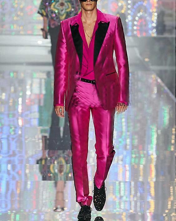 Silk Satin Men Suits Wedding Tuxedos 2 Pieces Slim Fit Formal Peak Lapel Party