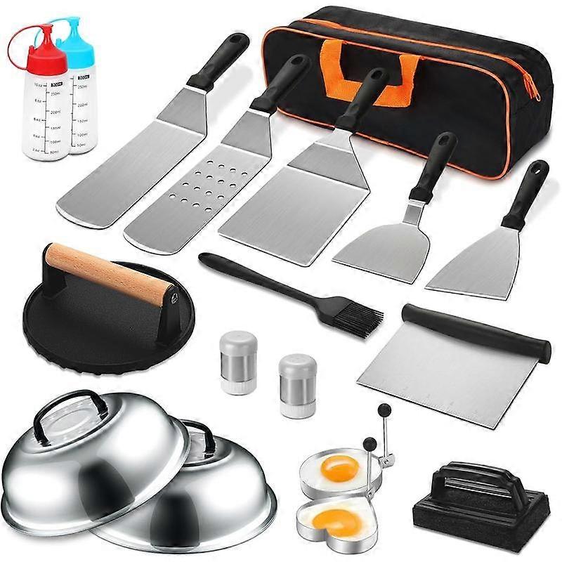 19 count Griddle Accessories Kit, Stainless Steel Flat Top Grill Accessories Set for Blackstone and Camp Chef, Grill Spatula Set with Enlarg