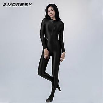 AMORESY Women's Glossy Smooth Jumpsuits Workout Sports Catsuits Zipper Bodysuits