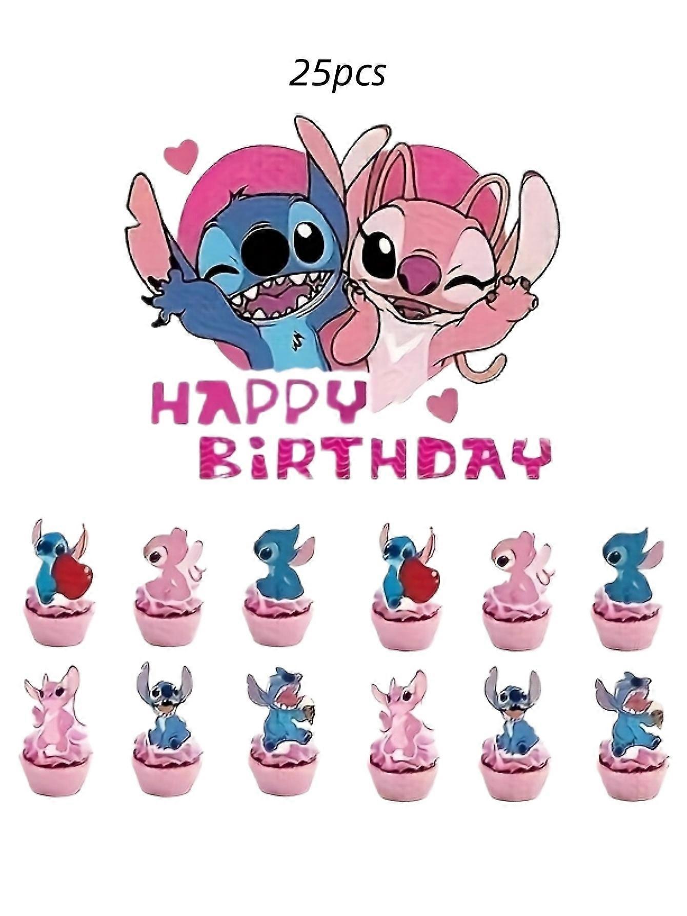 25pcs Disney Stitch and Angel of decorations, Stitch birthday special event party decoration card insert