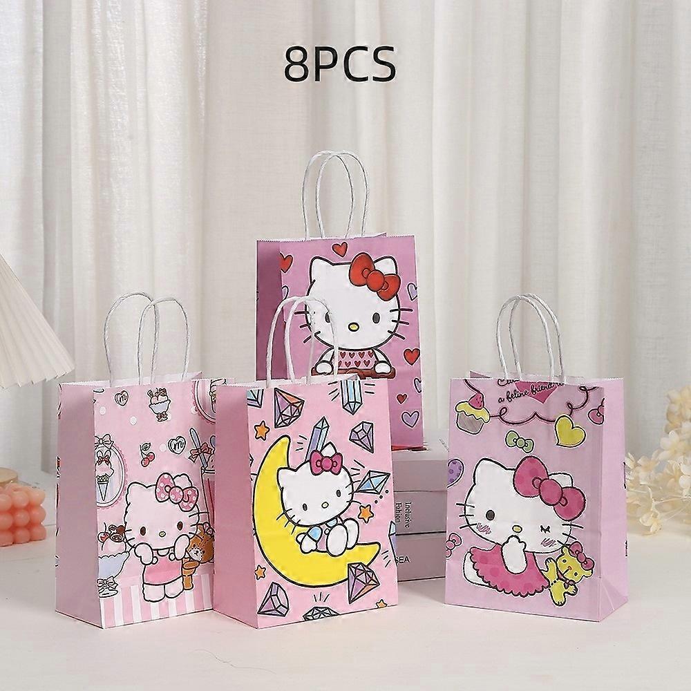 4/8pcs Hello cute Kitty Gift Bags Sanrio Cartoon Design Kraft Paper Gift Bags for Birthday, Party, Holiday Gift Wrapping