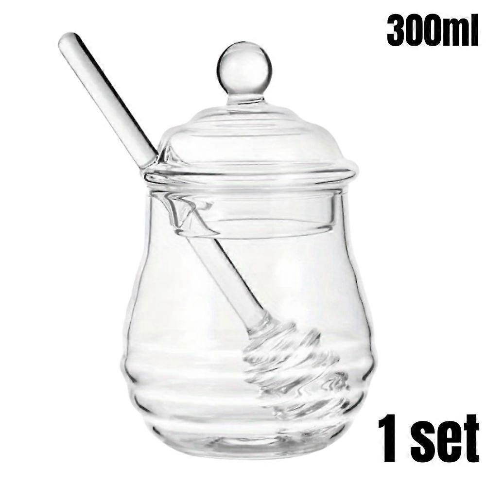 1/2set Glass Honey Jar with Lid & Stirring Rod 300ml Heat-Resistant Honey Pot for Serving Syrup Sugar Storage Home Kitchen Essen