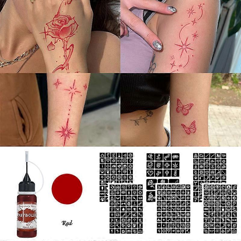 Long-Lasting Mixed Color Temporary Tattoo Gel Kit with 6pcs Template Stickers for Creative Body Art Parties,Holidays,Festivals