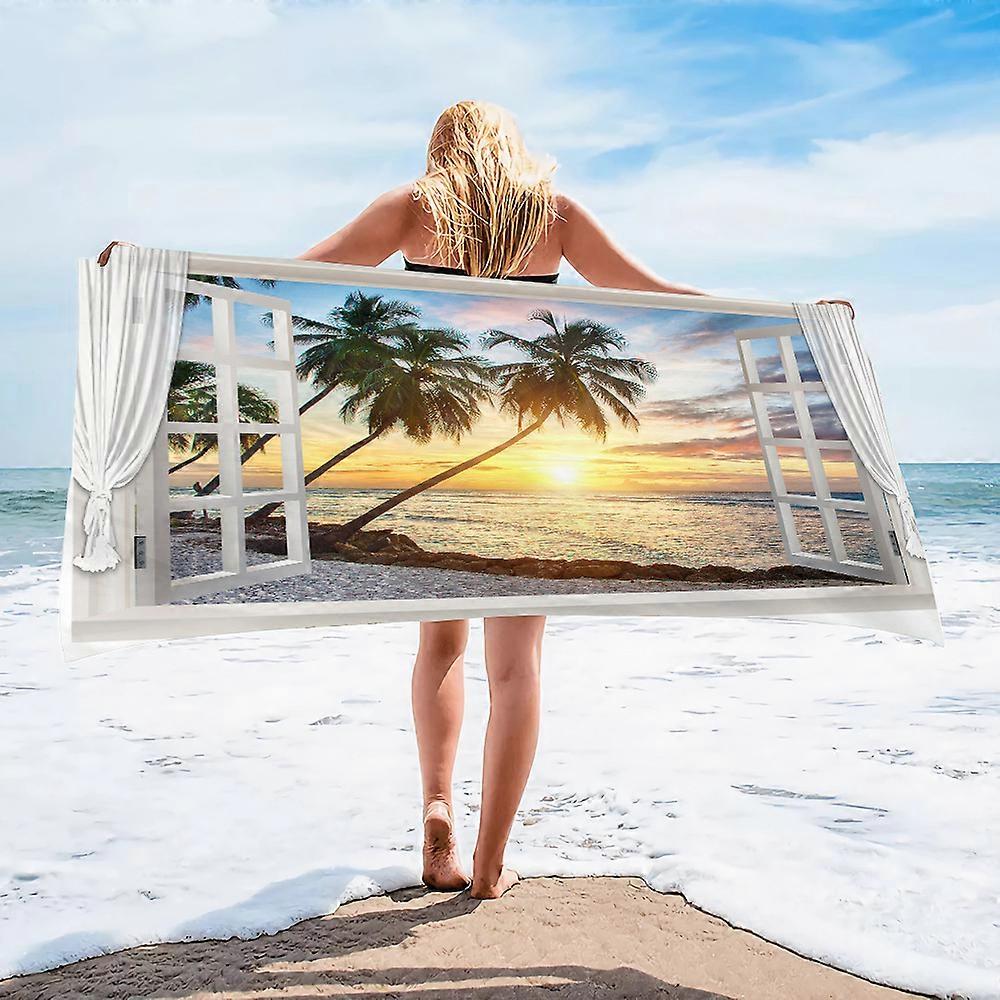 Beachfront Window Microfiber Beach Towel Mandala Digital Print Bath Towel Absorbent Bohemian Bath Towel