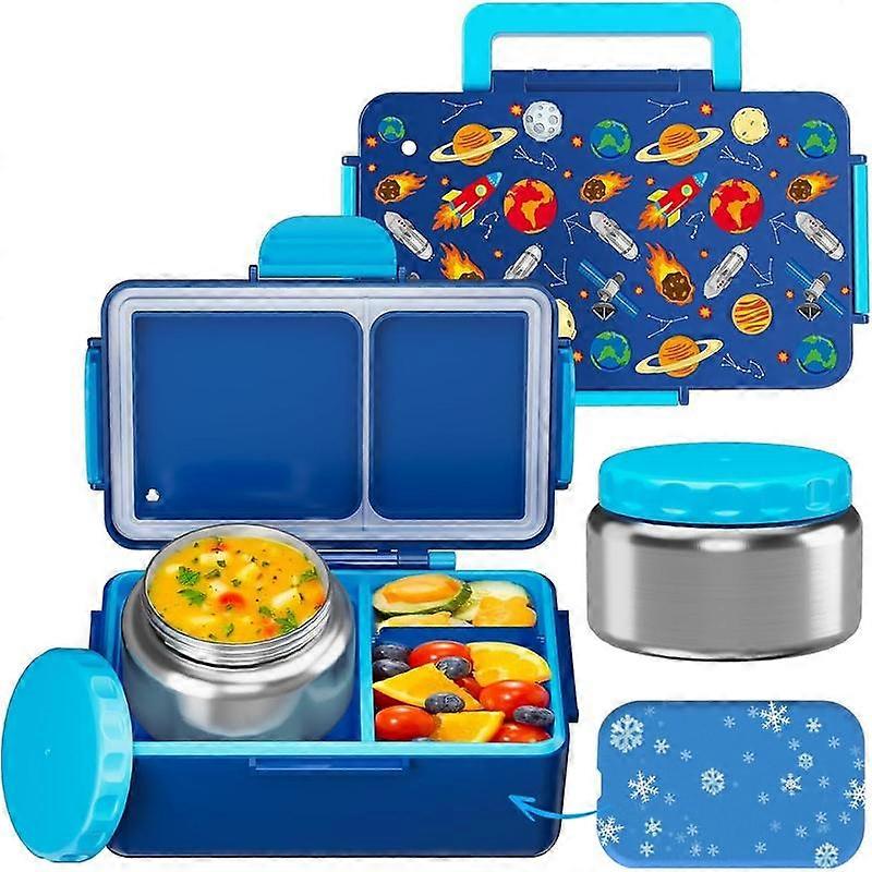 Bento Lunch Box - 12 oz Stainless-Steel Soup Thermo & 3-Compartment Leak-Proof Container with Built-In Ice Pack, Insulated Jar for Boys &