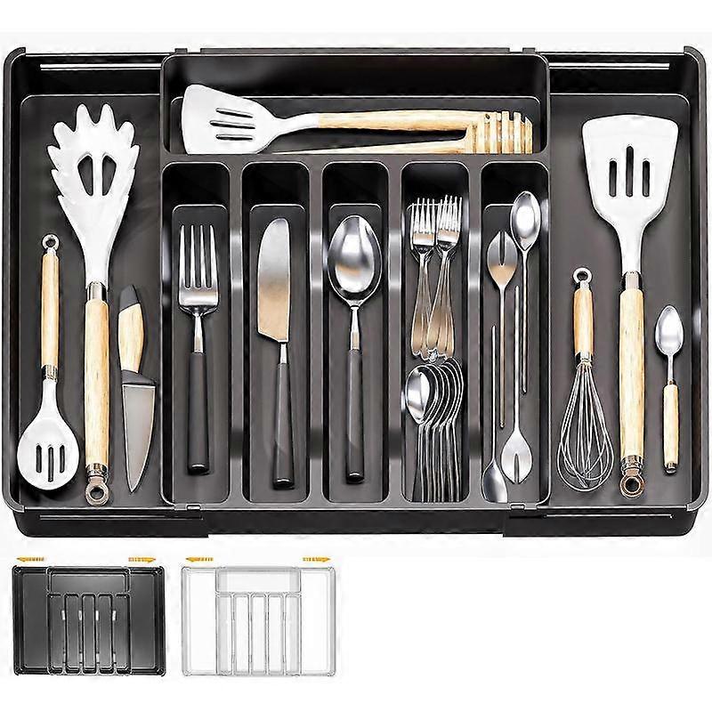 Silverware Drawer Organizer Tray, Expandable Utensil Organizer Grade for Kitchen Flatware And Cutlery, Plastic Silverware Holder for Spoons