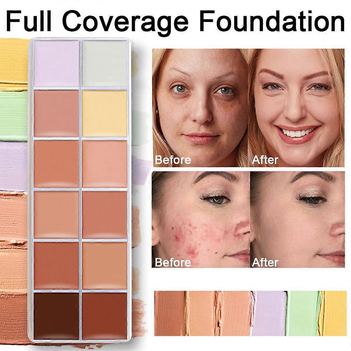 12 Color Concealer Foundation Makeup, Waterproof Skin Tone Correction Concealer, Long-term Full Coverage Makeup Facial Cosmetics