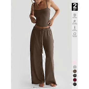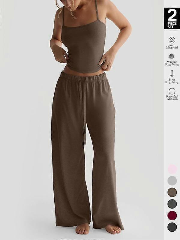Women's Solid Cami Top & Wide Leg Pants Loungewear, Casual Comfy Pyjama Set for Women, Women's Sleepwear for Summer, Homewear