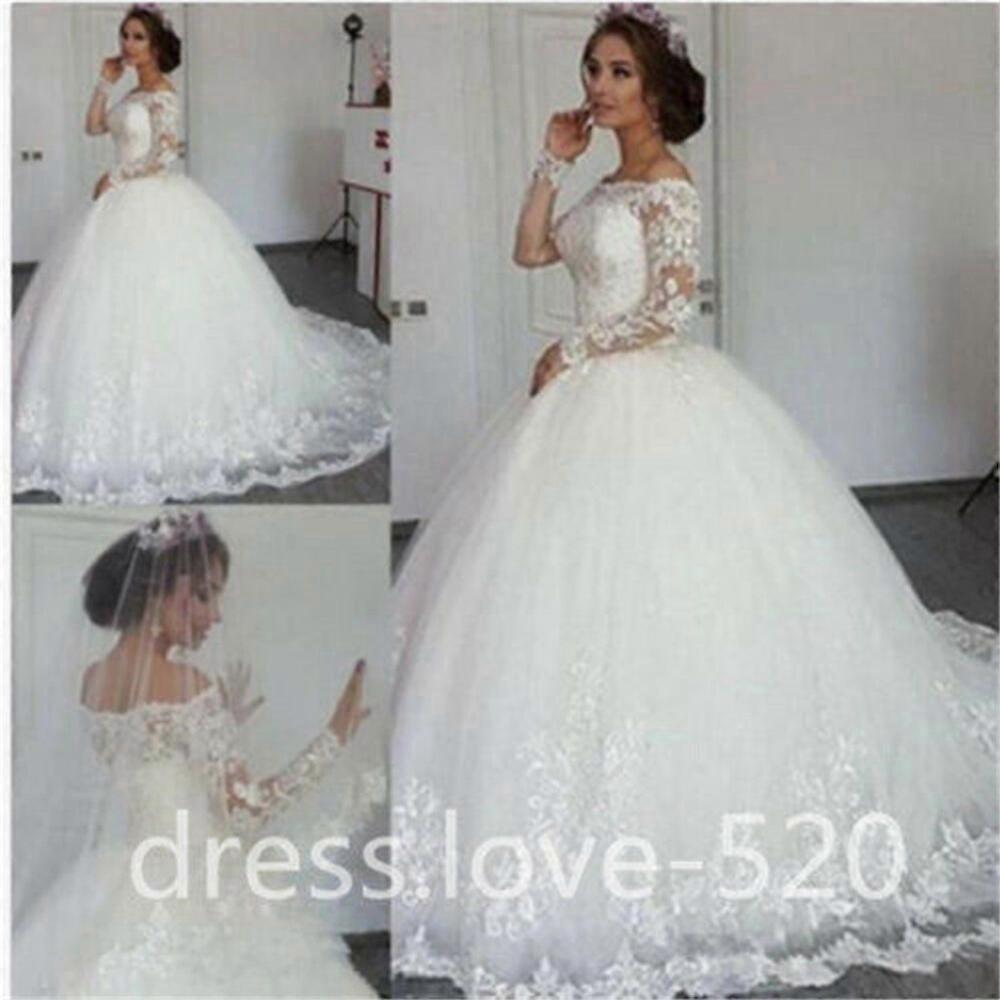 Romantic Wedding Dresses Long Sleeves Off Shoulder Lace Princess Bridal Gowns