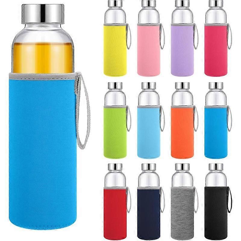 12 Set 18 oz Clear Glass Water Bottles, Glass Juicing Bottles with Protection Sleeve and Stainless Steel Leak Proof Lids for Milk Smoothie