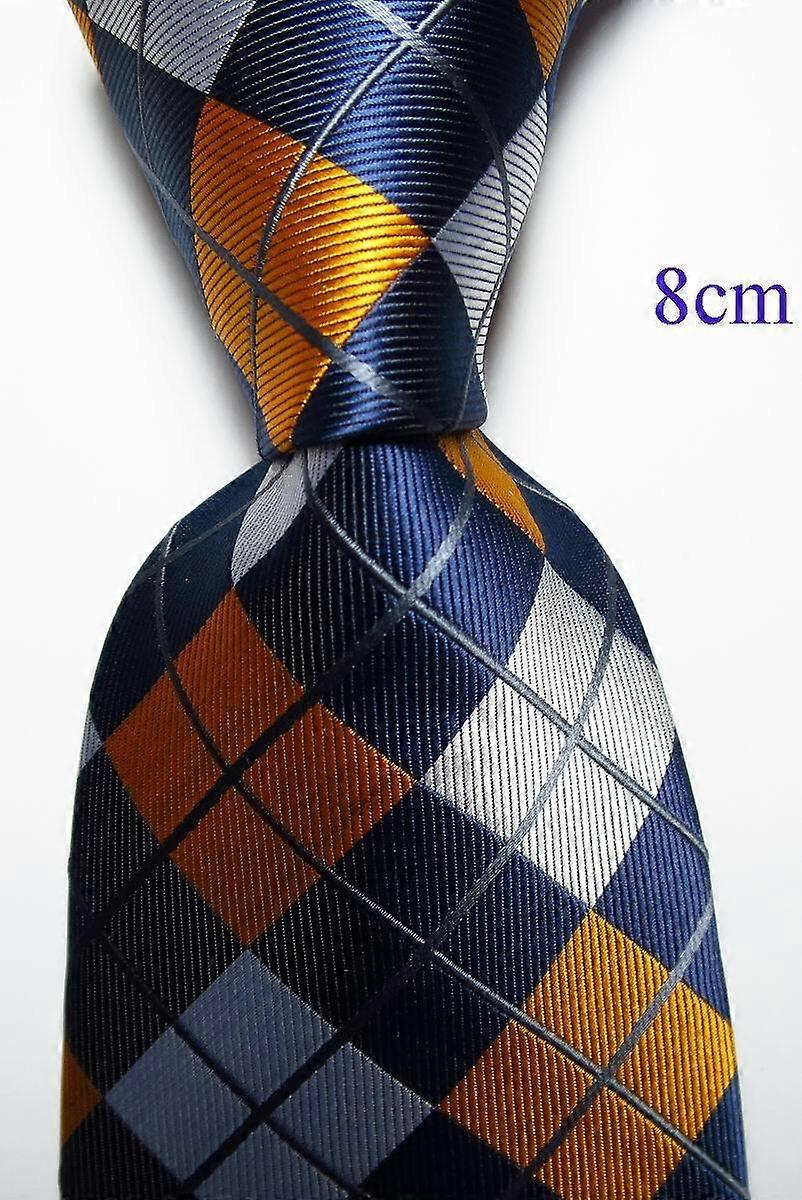 New Classic Checks Blue Orange White JACQUARD WOVEN Silk Men's Tie Necktie