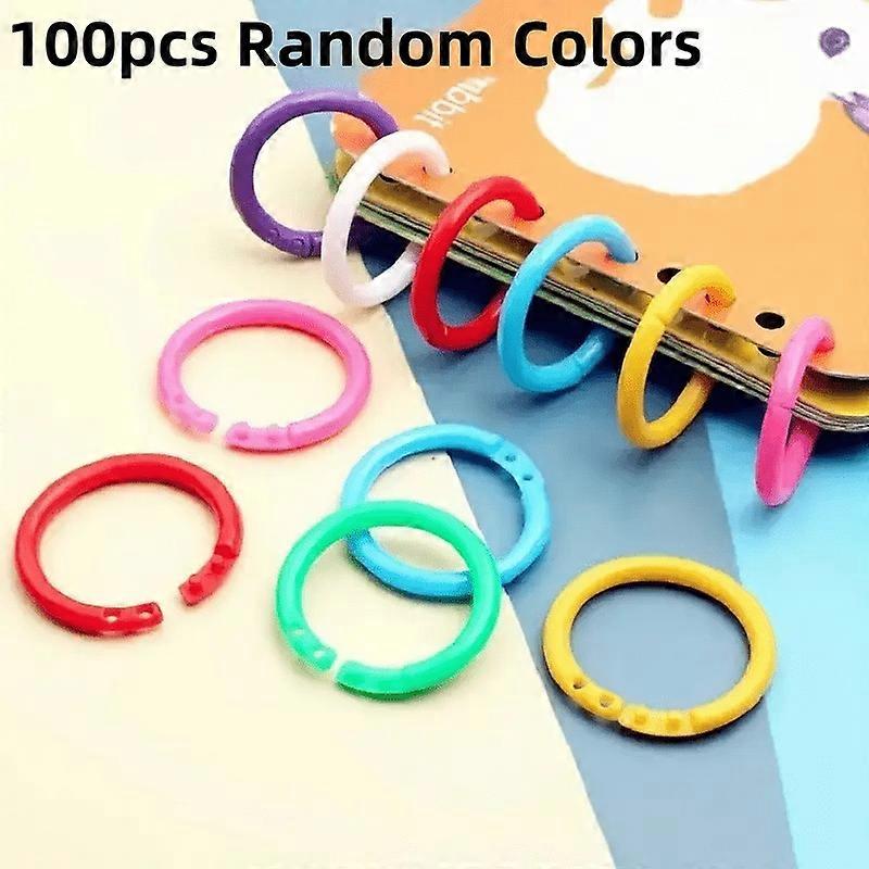 100pcs Colorful Double-Button Book Rings-Durable Polyethylene,Snap-Open Flexible Design, Assorted Colors for Office & School Use