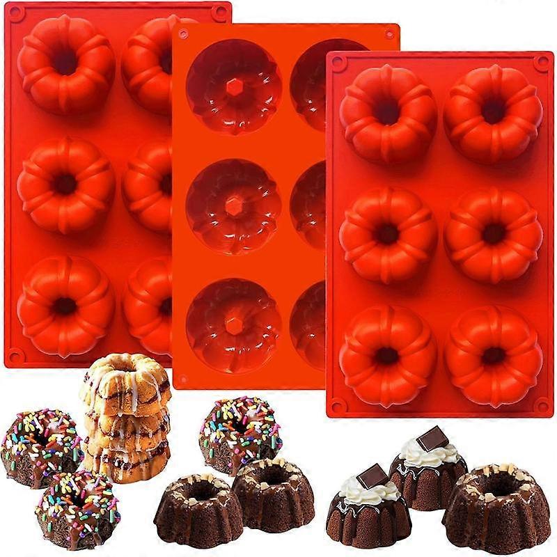 3 count Mini Fluted Tube Cake Pan, 6-Cavity Fluted Tube Cake Pan Molds for Baking Cupcake, Cornbread, Brownie, Donuts, Jello Red(B)