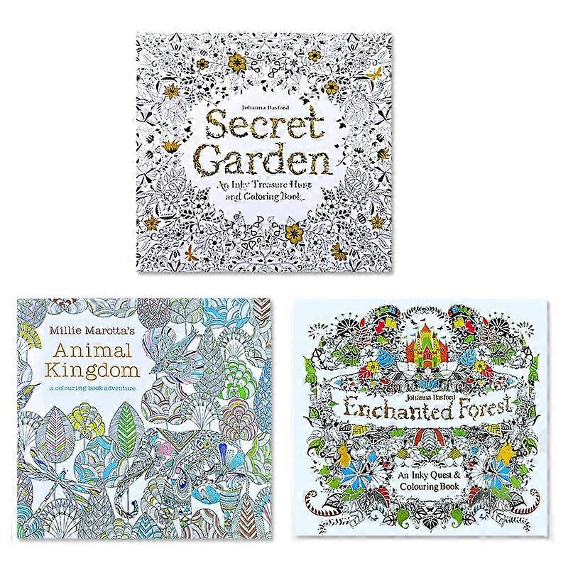3 Pcs/Set Secret Garden + Enchanted Forest + Animal Kingdom Coloring Book Children Drawing Coloring Books English Edition