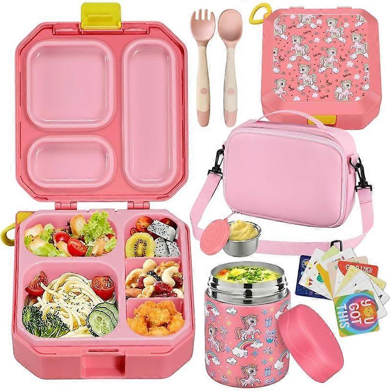 Bento Lunch Box for with 12oz Soup Thermo Leak-Proof Lunch Container with 5 Compartment Thermo Hot Jar and Insulated Lunch Bag for Girl