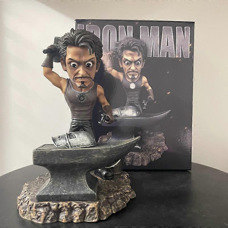 Marvel Avengers Q-version Iron Man Forging Iron Action Figure PVC Statue Model Decoration Desktop Ornament Birthday Gift