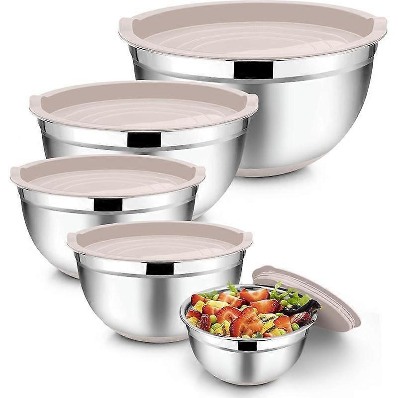 Mixing Bowls with Set, 7/3.5/2.5/1.5/1 QT, Stainless Steel Large Metal Salad Nesting Bowl, Non-Slip Bottom & Airtight Lid, & Deep - Set o