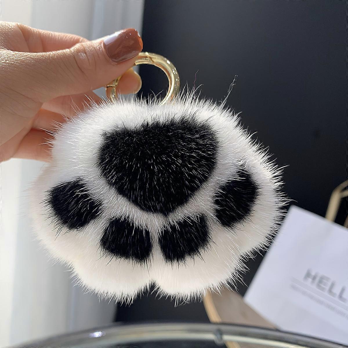 Mink Fur Pompom Cat Paw Key Ring for Women,Adorable Bag Charms Purse Accessories for Handbags, Car keychain, Gift for Girlfriend