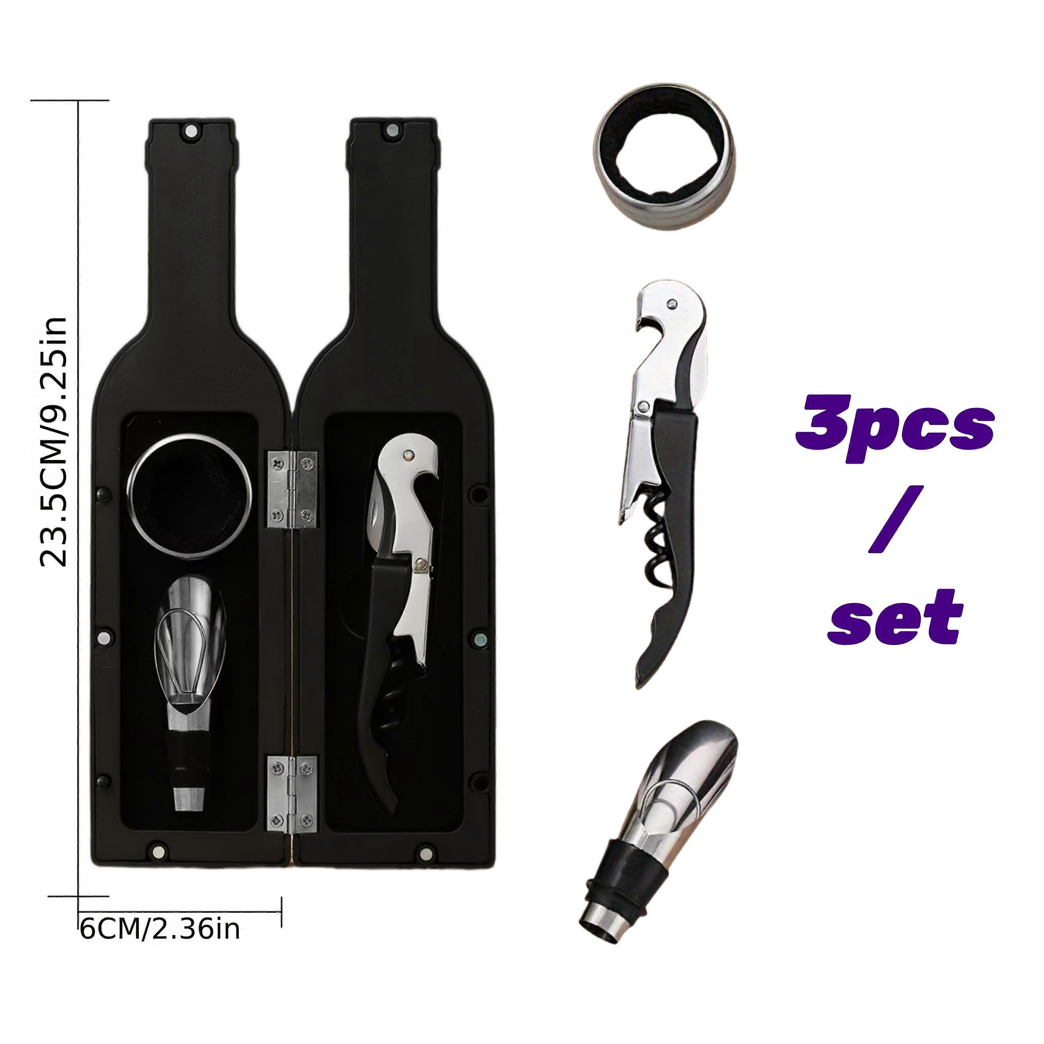3/5 pcs Deluxe Wine Accessories Gift Set Stainless Steel Wine Opener with Corkscrew Stopper Pourer Foil Cutter for Home Bar Use