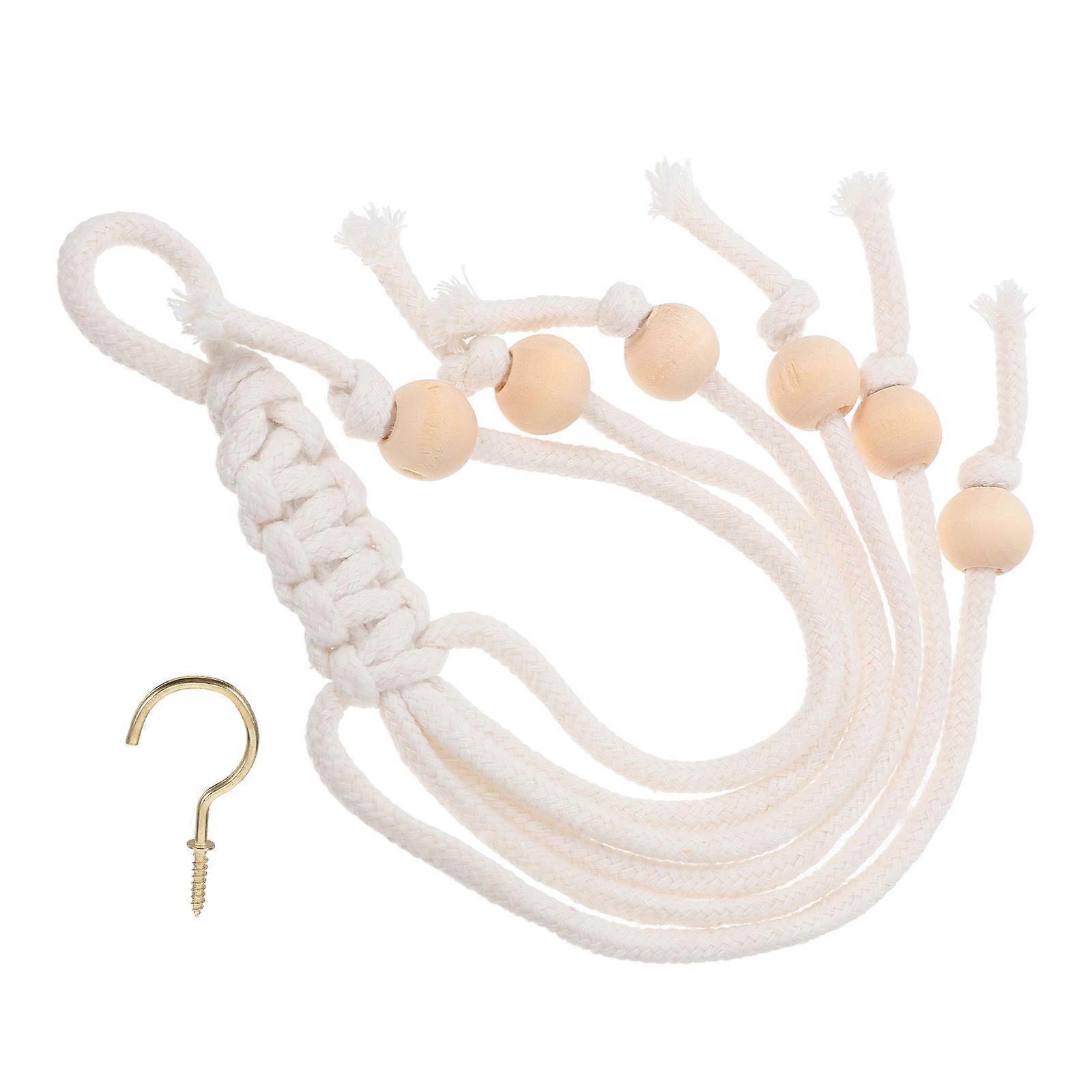 This fruit hanger under cabinet is meticulously to avoid unraveling. This fruit and vegetable hanging rope can hold quite of fresh produce. It's perfect for banana, potato, onion, garlic, any fruit or veggie you'd like to store in an . Features -Color:Beige -Material:Cotton rope, wood, iron -Size:23.00X5.00X1.20cm/9.04X1.97X0.47in -Size:7.00X3.50X0.80cm/2.75X1.38X0.31in -Hanging rope has Bohemian style, it is a Bohemian theme household decoration. -An excellent addition to kitchen decor that will give your family brings a sense of joy, which will be a great gift for mom. -Hand-woven from strong cotton cord, the hooks are very useful, so to use this tassel fruit hanging basket. -This under-cabinet woven cotton-root fruit hammock is carefully handmade to avoid falling apart. -With fine craftsmanship, it looks beautiful and elegant, a nice decor for your home. Package list: 2 x hanger 2 x hooks