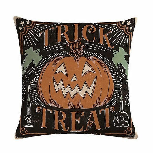 4pcs Halloween Pillow Covers 18*18Inch Linen Blend Throw Pillow Cover Pumpkin Cat Ghost Pattern Cushion Cover for Home Couch