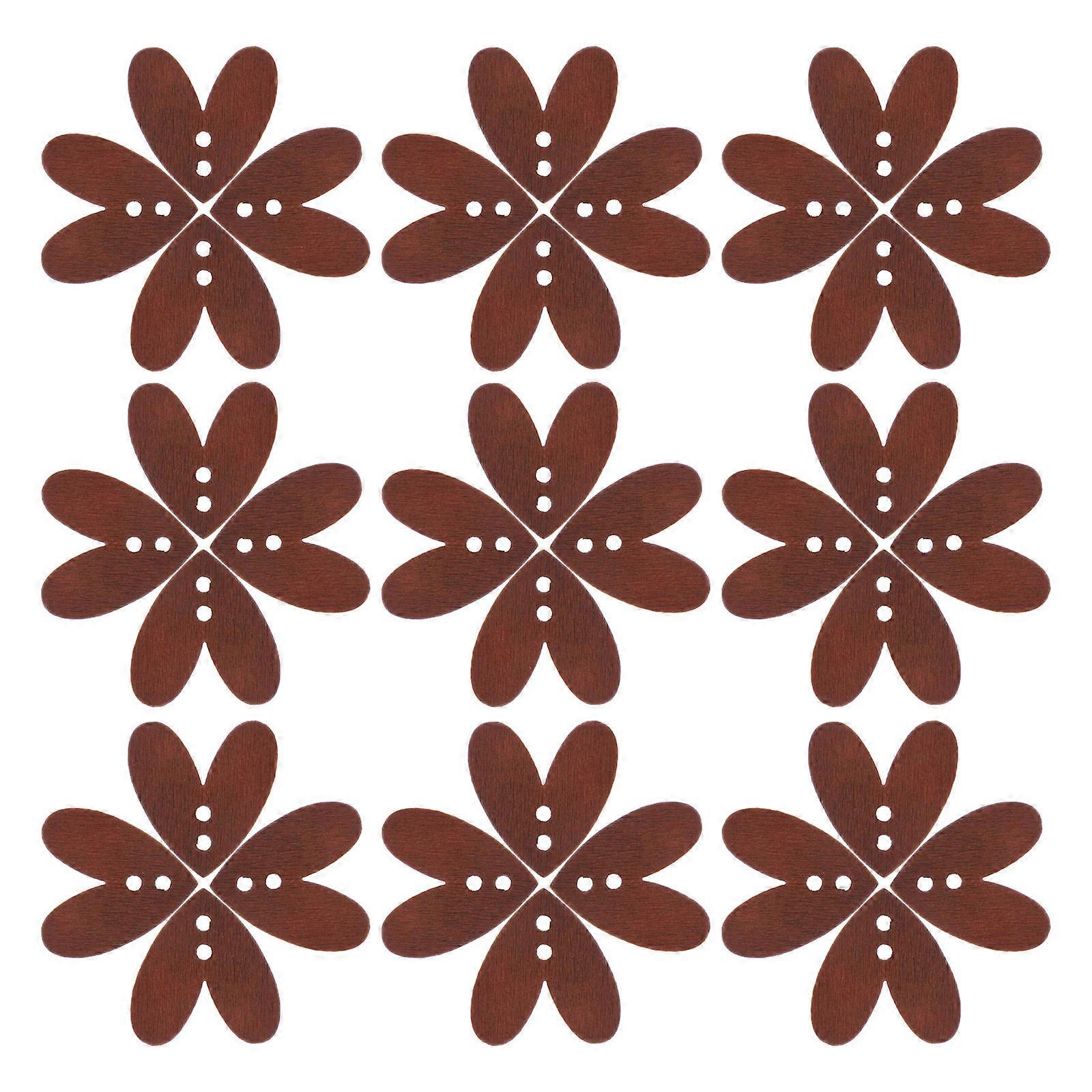 Brown Handcrafted Heart Shaped Wooden Buttons for Wedding Decor 100Pcs 2 Hole