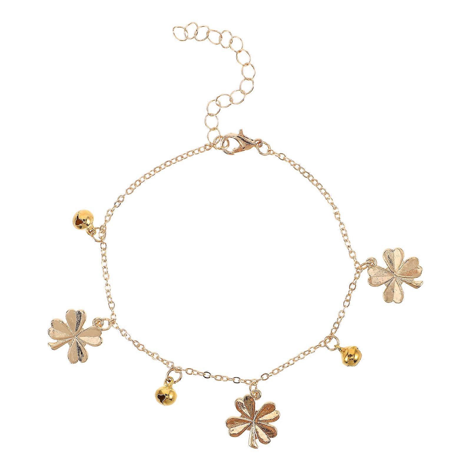 Beach Ankle Bracelet Alloy Foot Chain Anklet with Clover Bell Charm