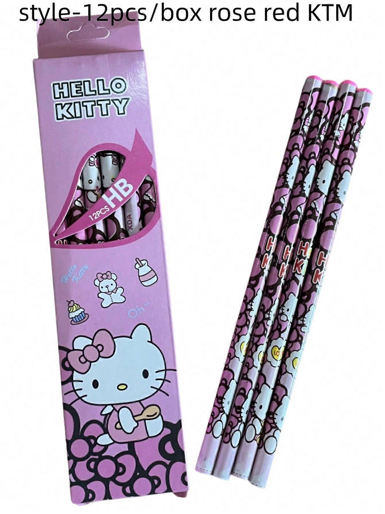 12Pcs/Box Pencil Melody Kuromi Cinnamoroll HB Black Write Draw Pencils Primary Stationery Woman Man Gift