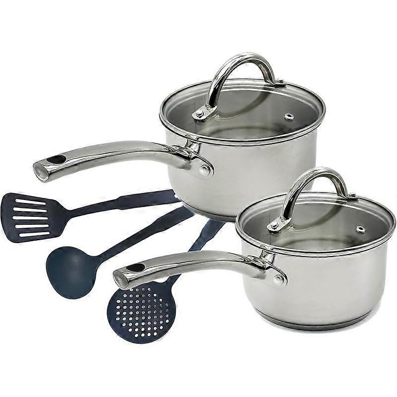 Stainless Steel Saucepan Glass Lid Steel handle Induction Impact Bonded 7 count Set