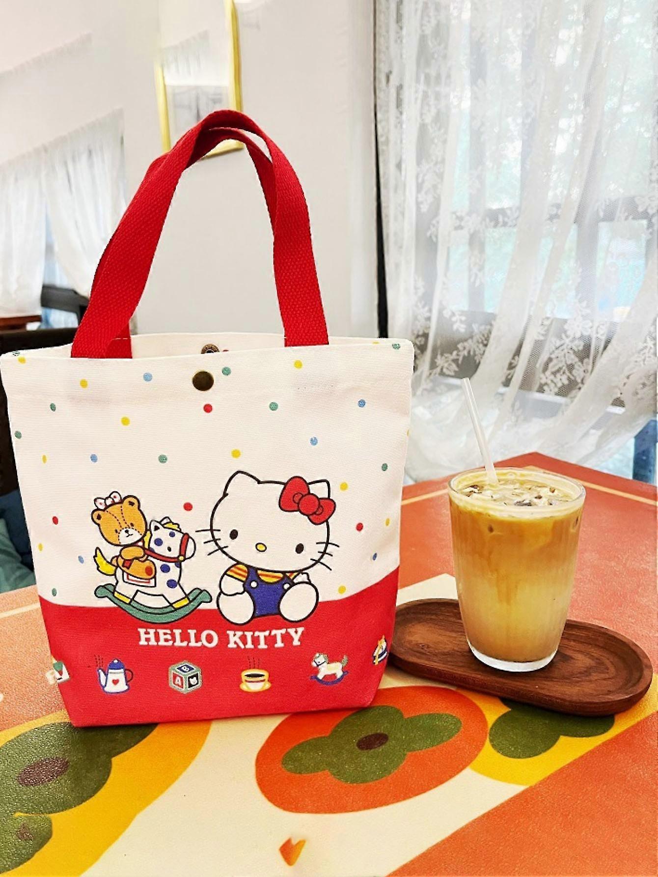 1pc Whimsical Hello Kuromi Kitty Cinnamoroll Canvas Tote Bag Stylish Portable Crossbody Storage Bag with Cartoon Character Desig