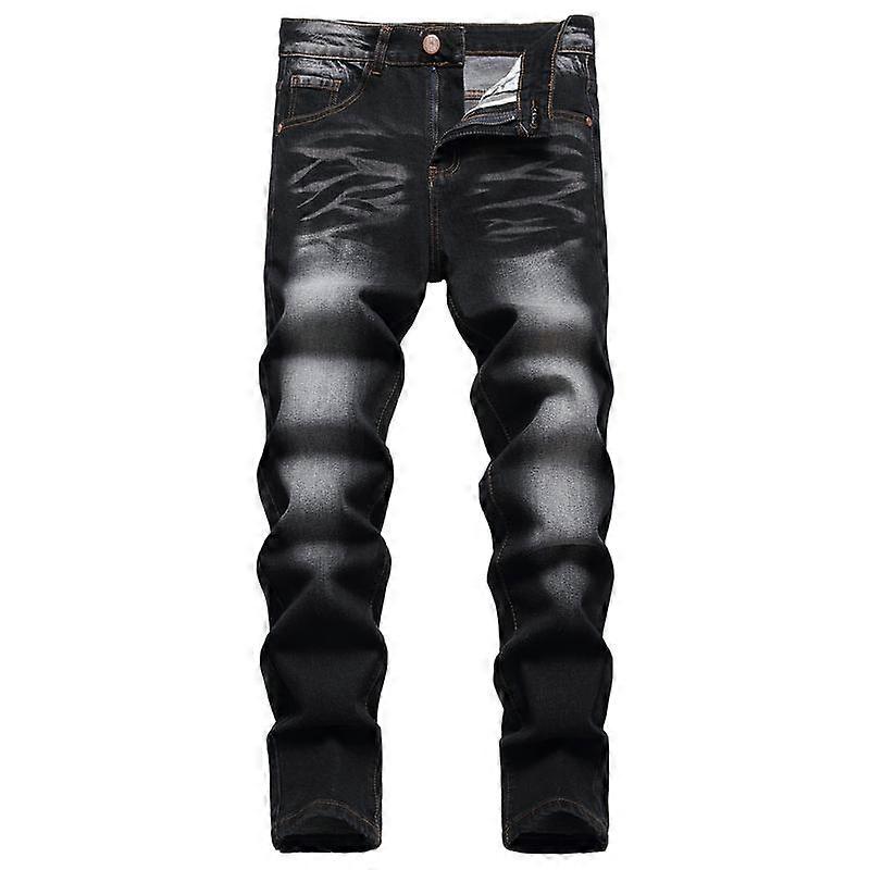 JUNBAOSS Men's Slim Fit Elastic Jeans Tear Tight Jeans, Straight Tube Fashionable Casual Trendy Chic Comfortable Elastic Waist Denim Pants,